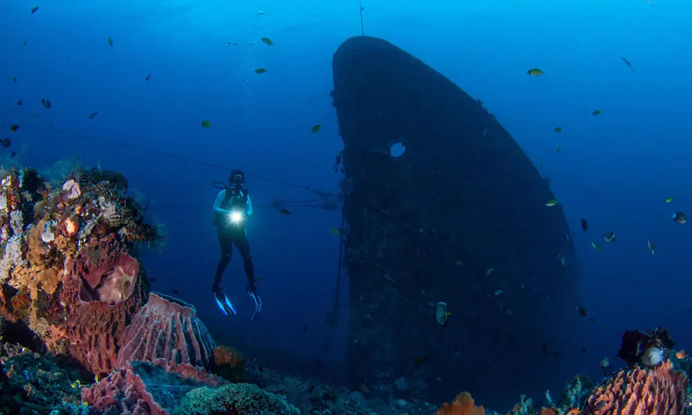 On land, you gaze upon temples and revere volcanoes. And the true pilgrimage takes place at the moment when you spit out a string of bubbles and bend towards the deep blue. Here, the gods manifest in another form: the sunken ship of Turanben is a tim